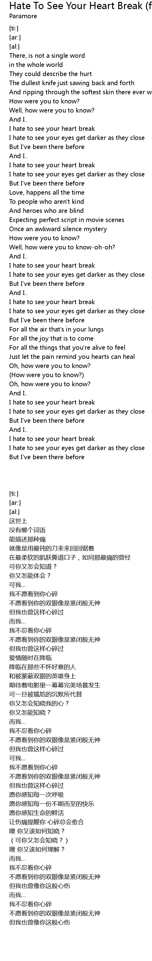 Hate To See Your Heart Break (feat. Joy Williams) Lyrics