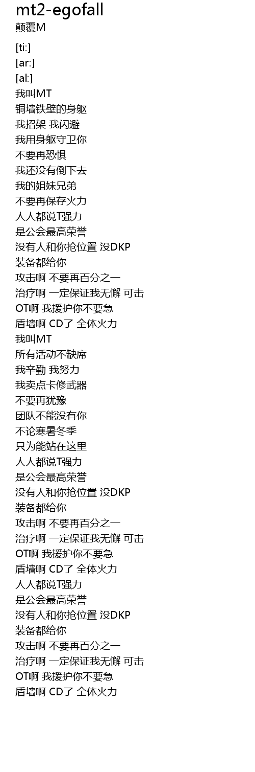 | [01:16.79] | 我叫MT |