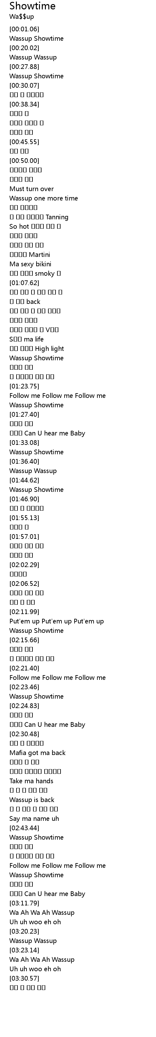 | [01:45.53] | Wassup Showtime |
