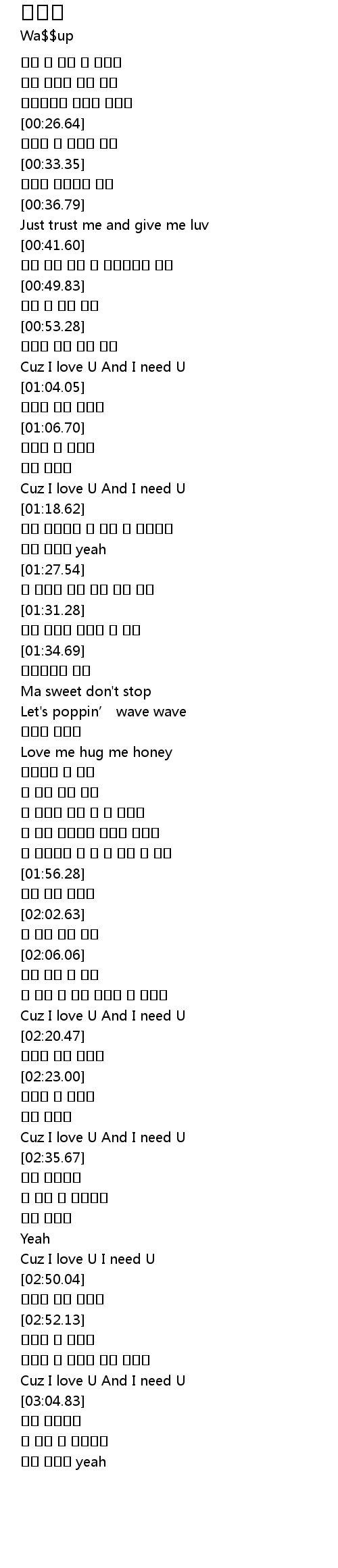 | [02:28.93] | Cuz I love U And I need U |