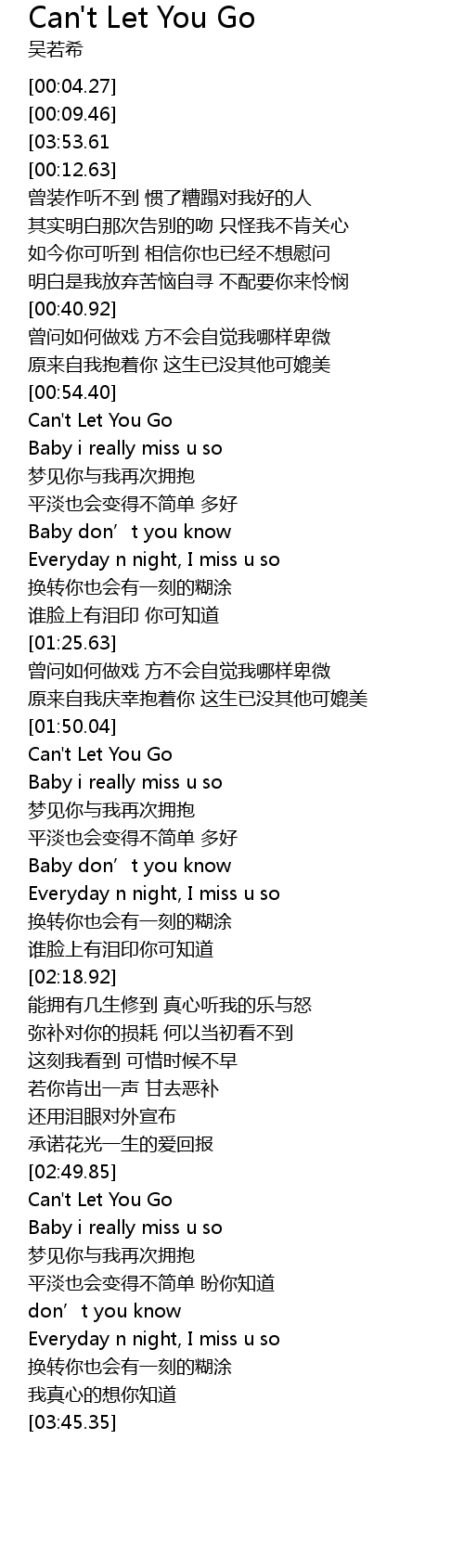 | [01:50.25] | Can't Let You Go |
