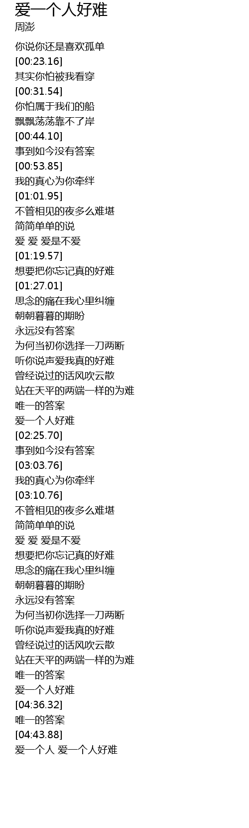 | [04:46.01] | ai yi ge ren ai yi ge ren hao nan |