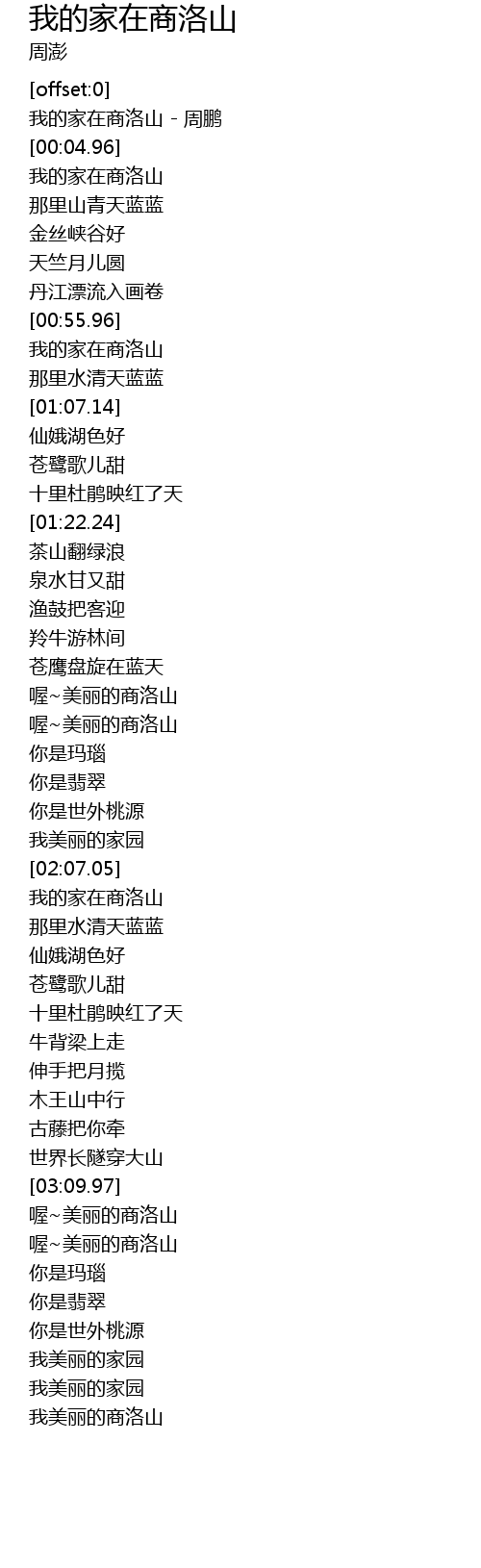 | [00:00.78] | 我的家在商洛山 - 周鹏 |