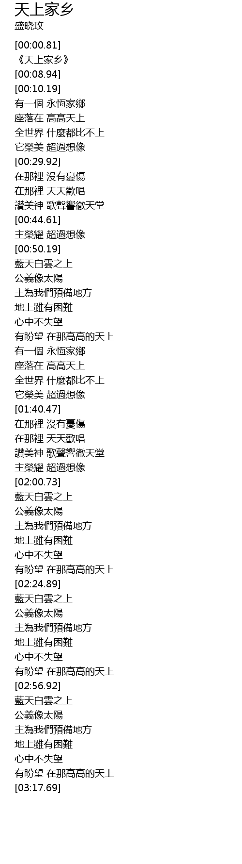 | [03:12.81] | 有盼望 在那高高的天上 |