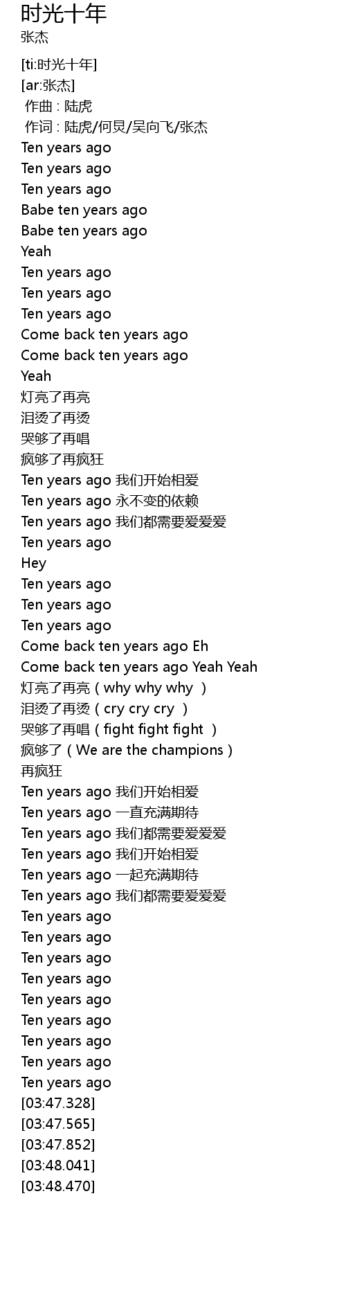 | [02:36.140] | Ten years ago yī zhí chōng mǎn qī dài |