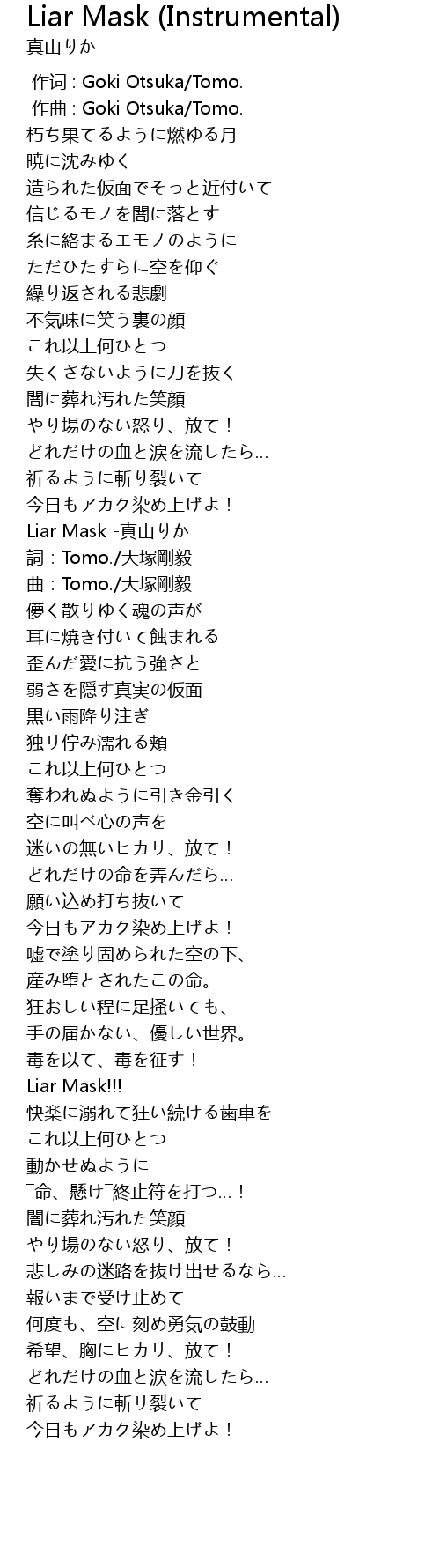 Liar Mask (Instrumental) Lyrics