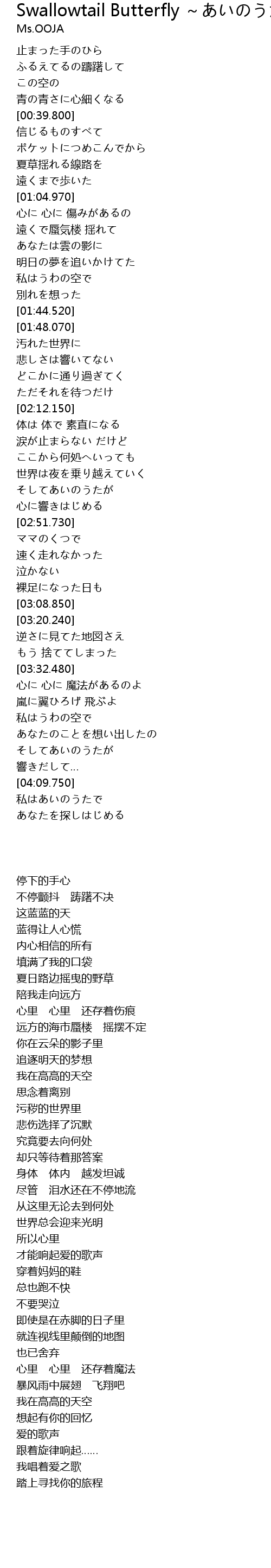 | Song | Swallowtail Butterfly ~あいのうた~ |