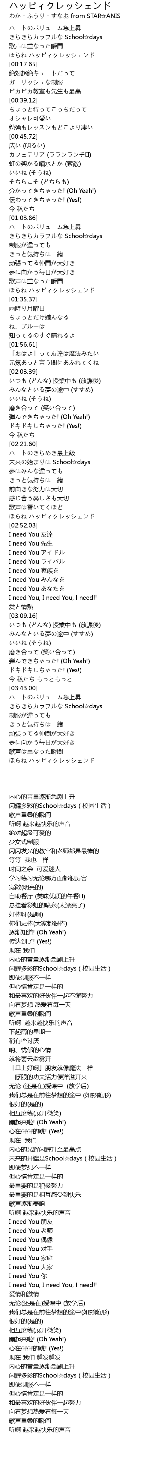 | [03:46.80] | きらきらカラフルな School☆days |