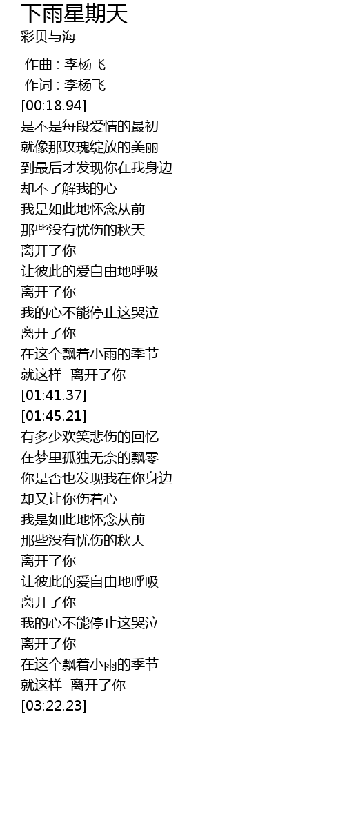 | [00:01.00] | zuò cí : lǐ yáng fēi |