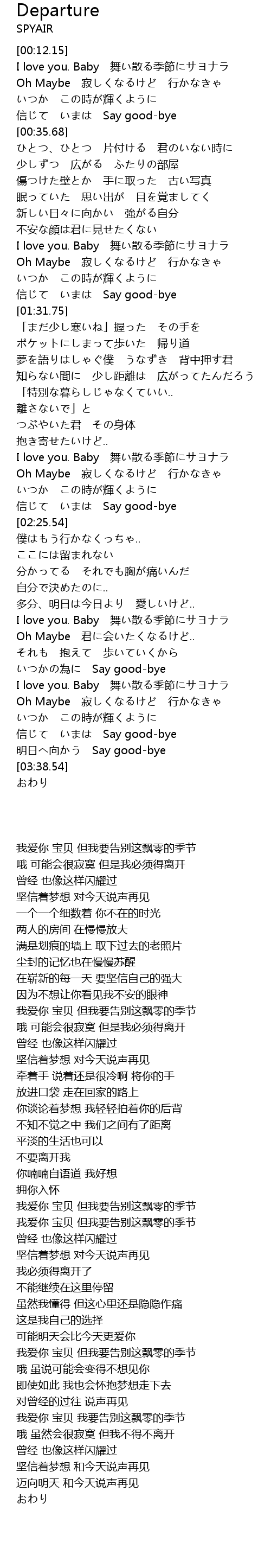 | [03:12.69] | I love you. Baby 舞い散る季節にサヨナラ |