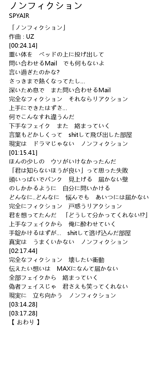 | [00:49.63] | 完全なフィクション それならリアクション |