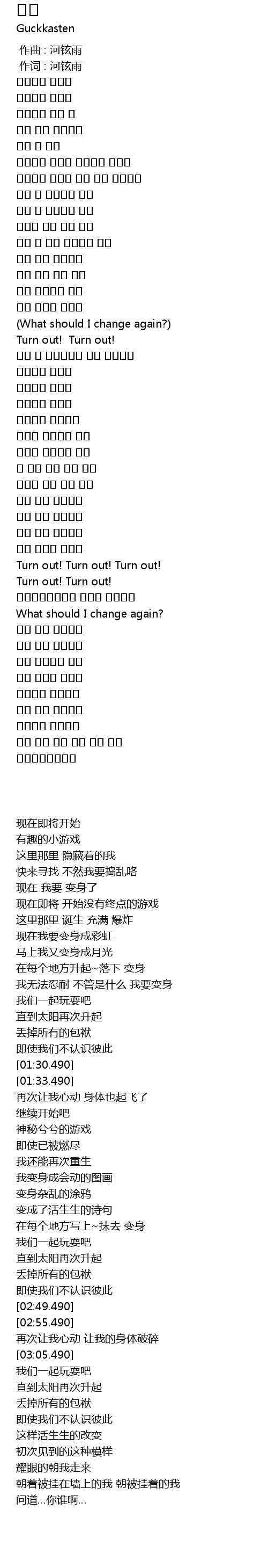 | [01:11.490] | 참을 수 없어 무엇이든 변신 |