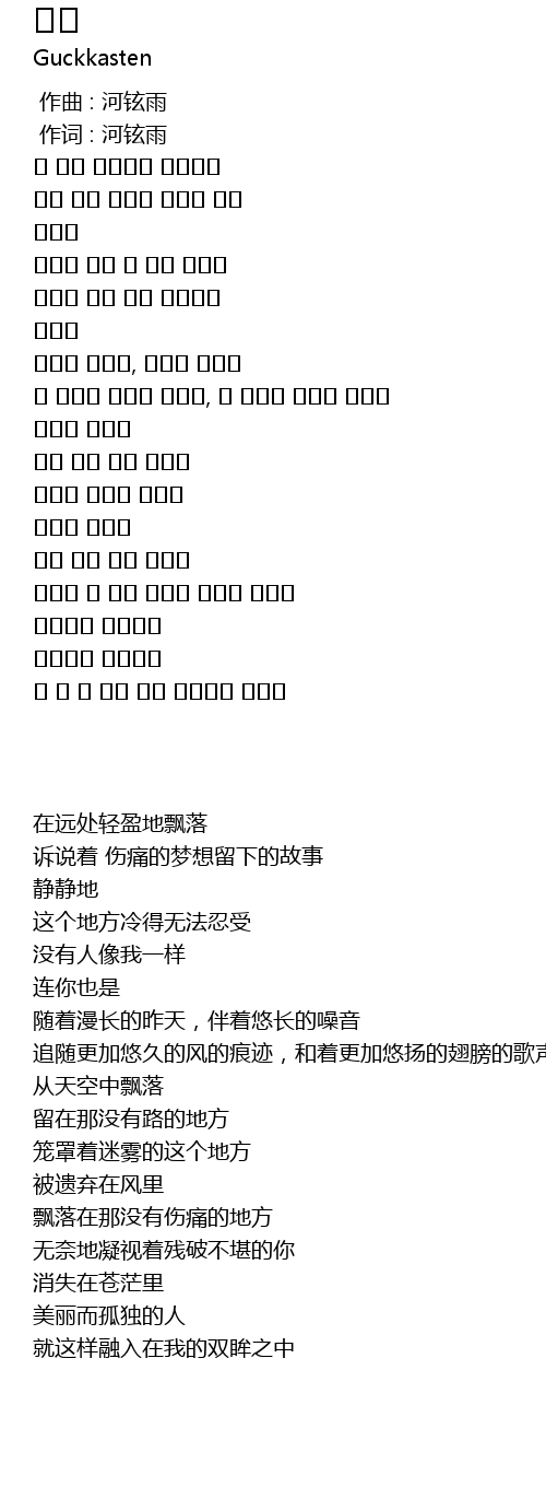 | [00:41.27] | 아픈 꿈은 남겨진 이야길 하네 |