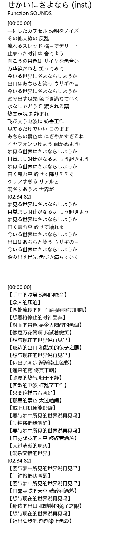 | [02:44.14] | 梦见る世界にさよならしようか |