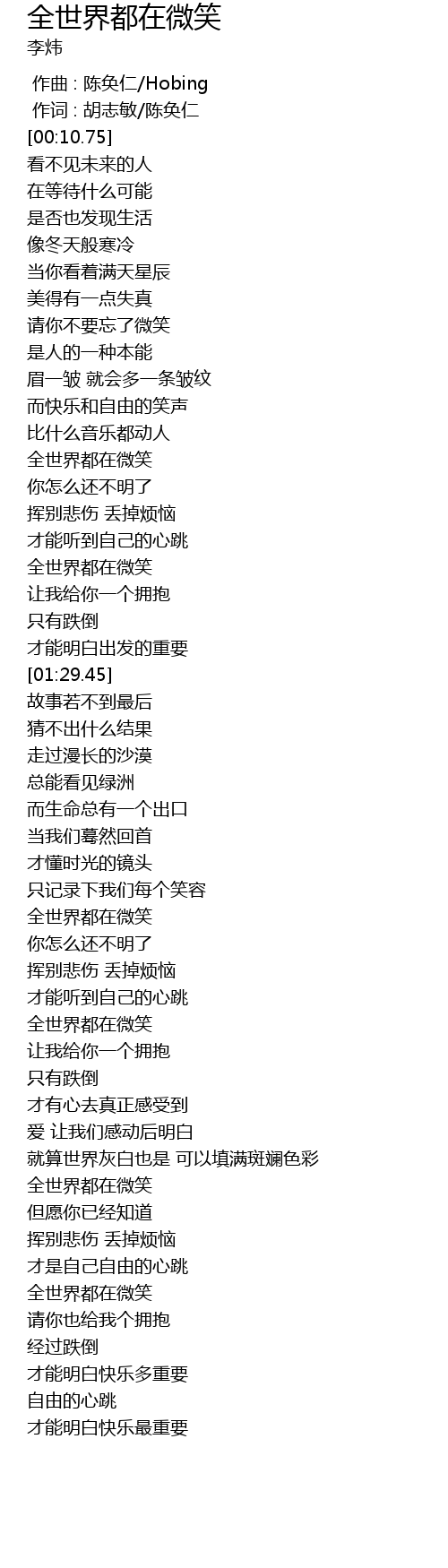 | [00:00.00] | 作曲 : 陈奂仁/Hobing |
