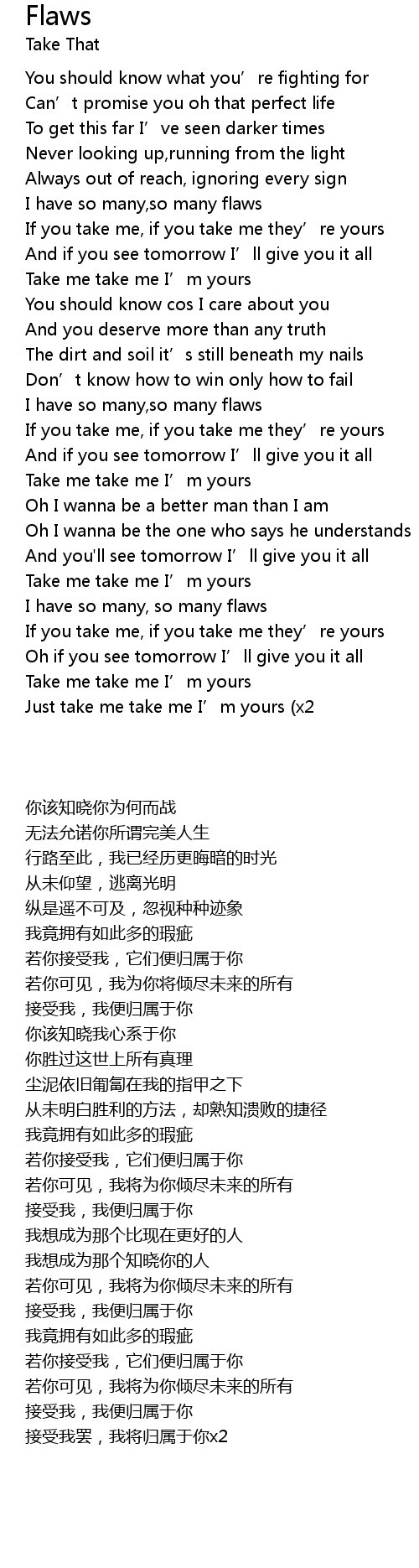 | [00:51.530] | If you take me, if you take me they' re yours |
