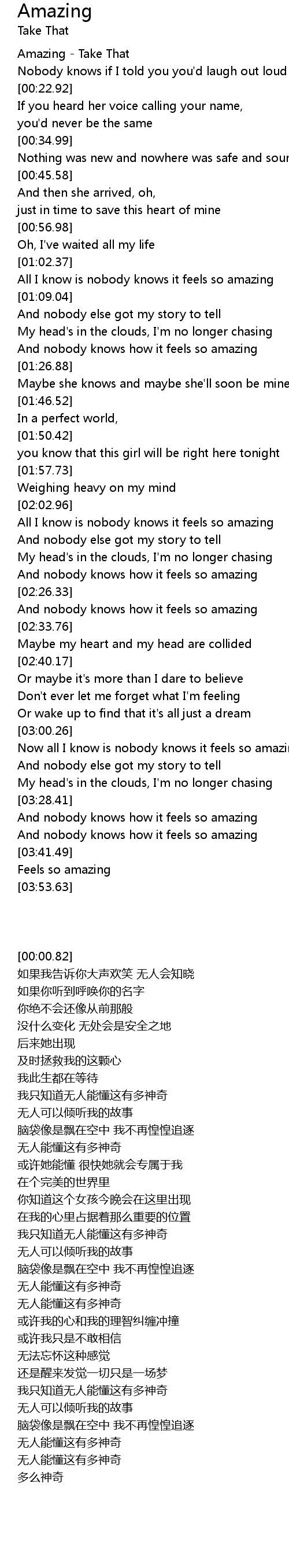 | [03:34.46] | And nobody knows how it feels so amazing |