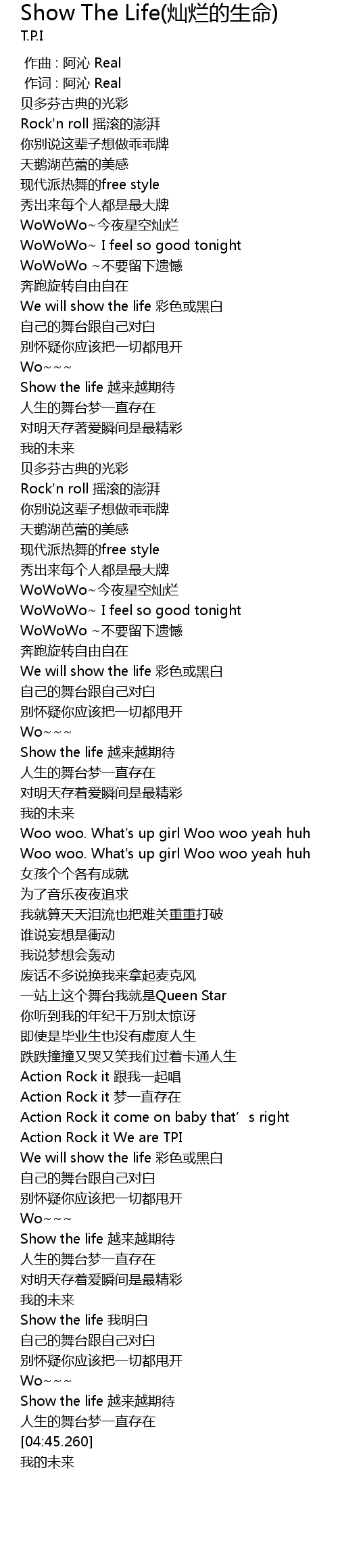 | [04:14.110] | Show the life yue lai yue qi dai |