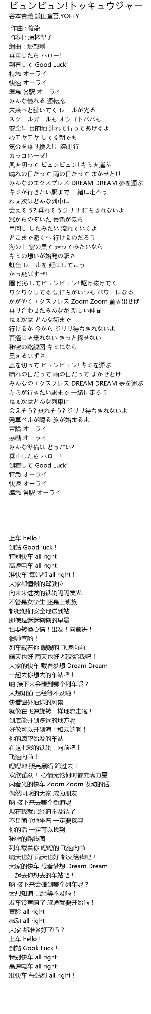 | [03:22.757] | みんなのエクスプレス DREAM DREAM 夢を運ぶ |