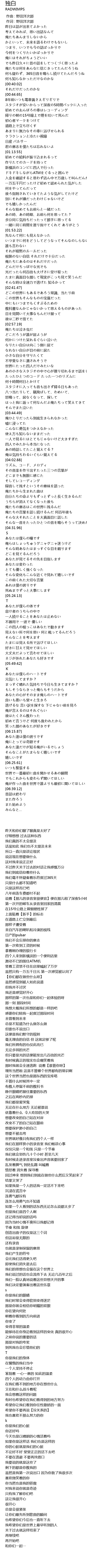 | [00:01.00] | 作词 : 野田洋次郎 |