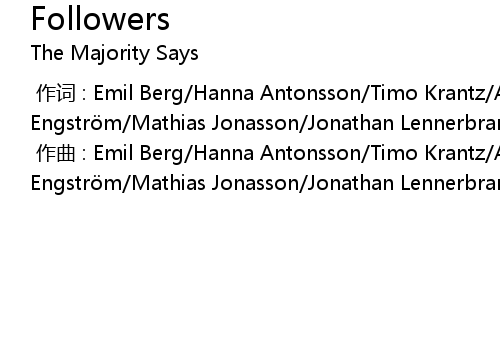 | [00:00.000] | 作曲 : Emil Berg/Hanna Antonsson/Timo Krantz/Axel Engström/Mathias Jonasson/Jonathan Lennerbrant |