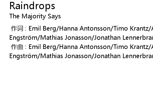| [00:00.000] | 作词 : Emil Berg/Hanna Antonsson/Timo Krantz/Axel Engström/Mathias Jonasson/Jonathan Lennerbrant |