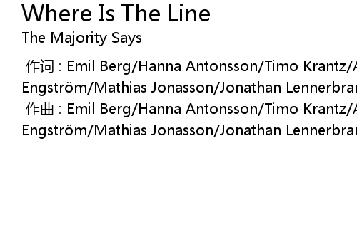 | [00:00.000] | 作词 : Emil Berg/Hanna Antonsson/Timo Krantz/Axel Engström/Mathias Jonasson/Jonathan Lennerbrant |