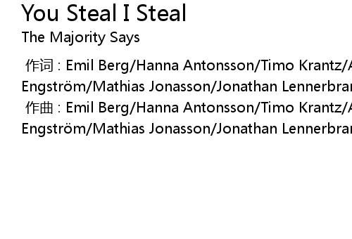 | [00:00.000] | 作词 : Emil Berg/Hanna Antonsson/Timo Krantz/Axel Engström/Mathias Jonasson/Jonathan Lennerbrant |