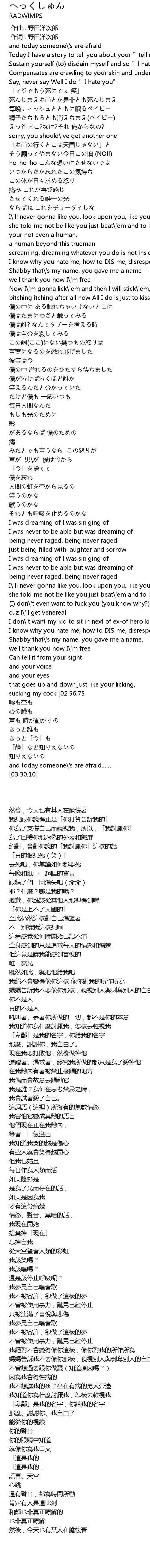 | [00:31.50] | 精子たちもろとも消えちまえ(バイビー) |