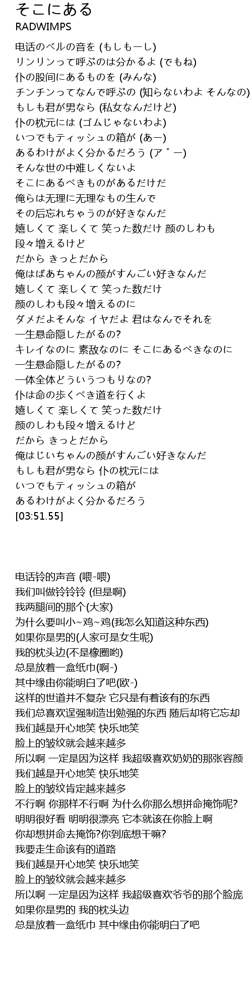 | [03:35.60] | いつでもティッシュの箱が あるわけがよく分かるだろう |