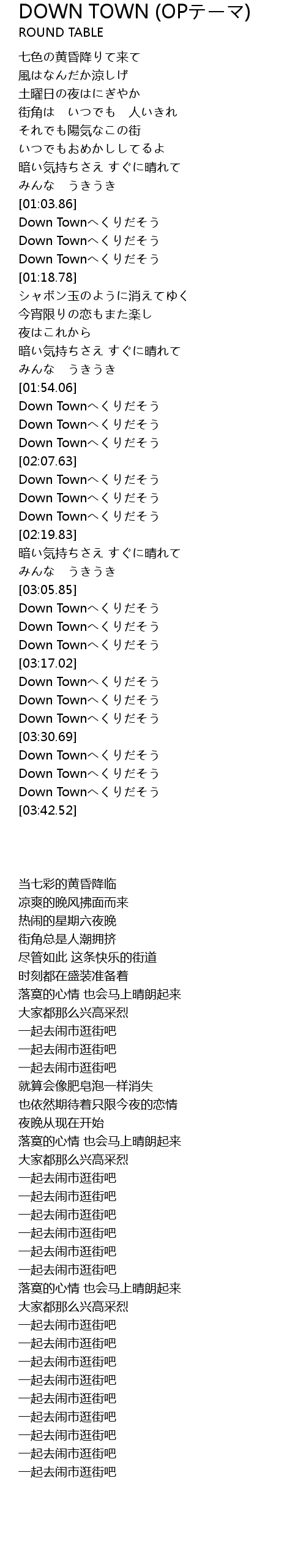 | [03:33.00] | Down Townへくりだそう |