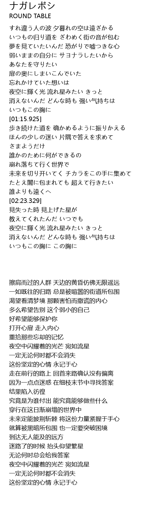 | [02:58.507] | 夜空に輝く光 流れ星みたい きっと |
