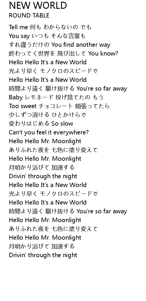 | [01:58.5] | Hello Hello Mr. Moonlight |