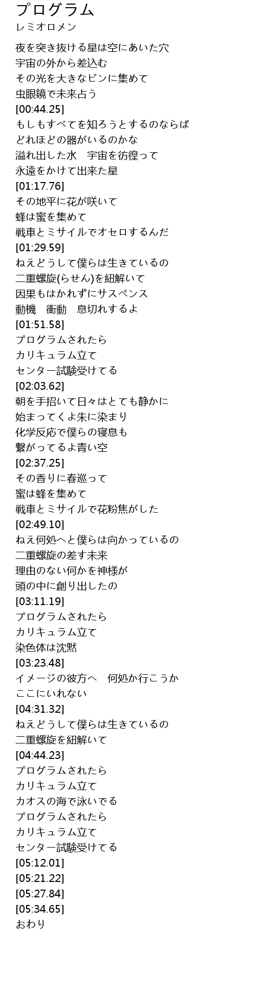 | [01:35.83] | 二重螺旋(らせん)を紐解いて |