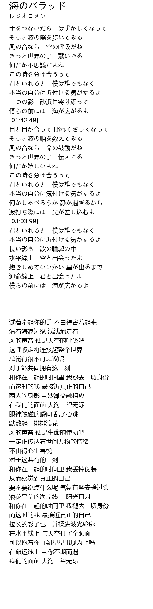 | [02:52.96] | 波打ち際には 光が差し込むよ |