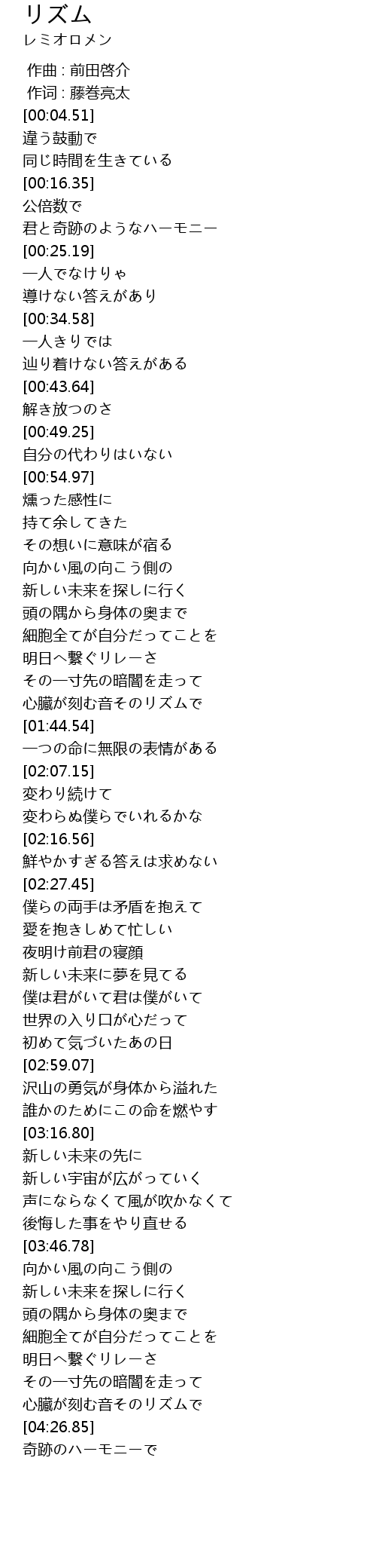 | [04:18.26] | 心臓が刻む音そのリズムで |