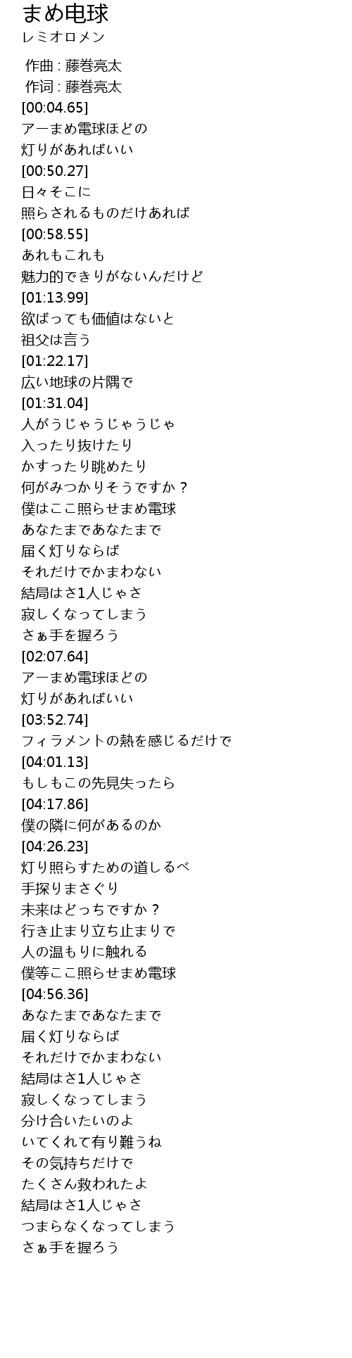| [04:50.74] | 僕等ここ照らせまめ電球 |