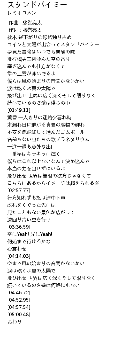 | [00:53.07] | コインと太陽が出会ってスタンドバイミー |