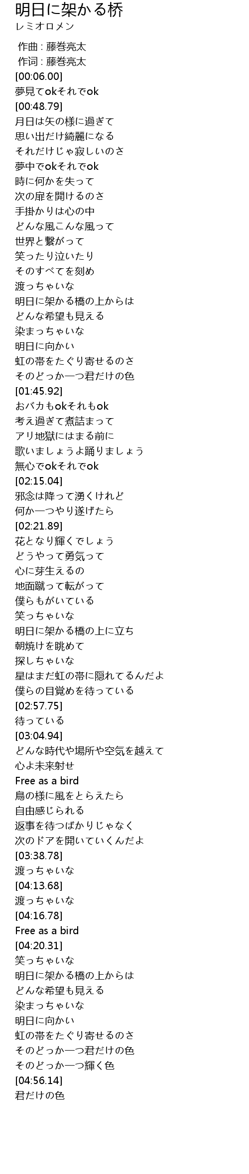 | [02:40.98] | 明日に架かる橋の上に立ち |