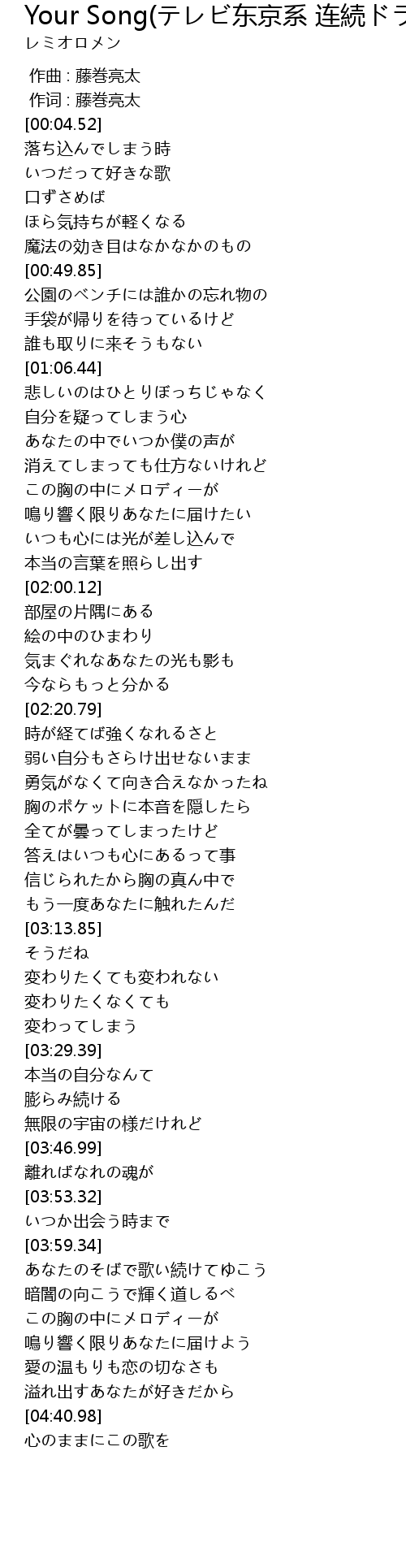 | [00:01.00] | 作词 : 藤巻亮太 |
