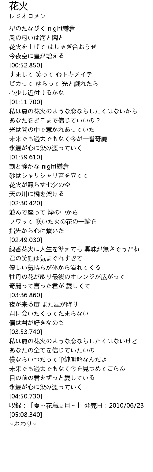 | [03:57.720] | 私は夏の花火のような恋ならしたくはないけど |