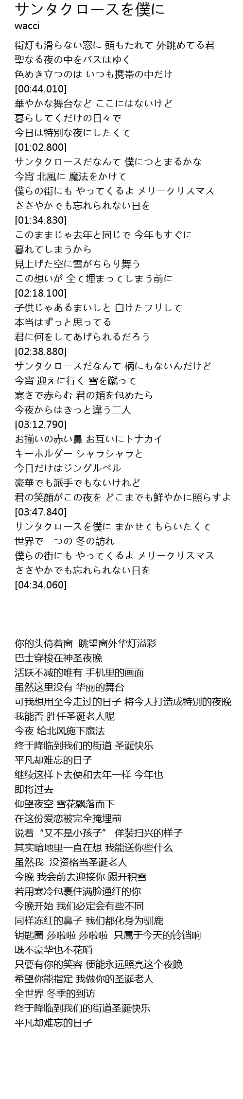 | [04:02.540] | サンタクロースを僕に まかせてもらいたくて |