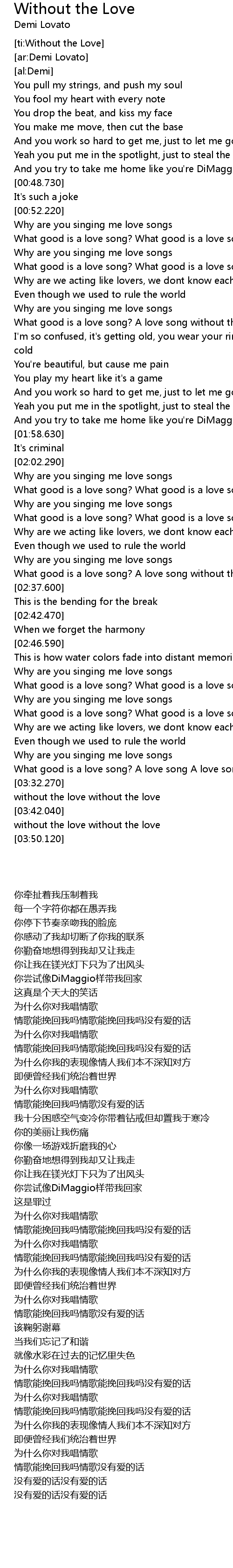 [ti:Without the Love] |