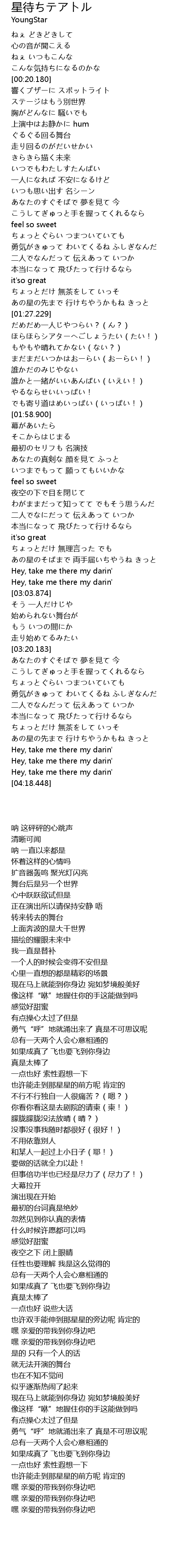 | [03:53.673] | あの星の先まで 行けちやうかもね きっと |
