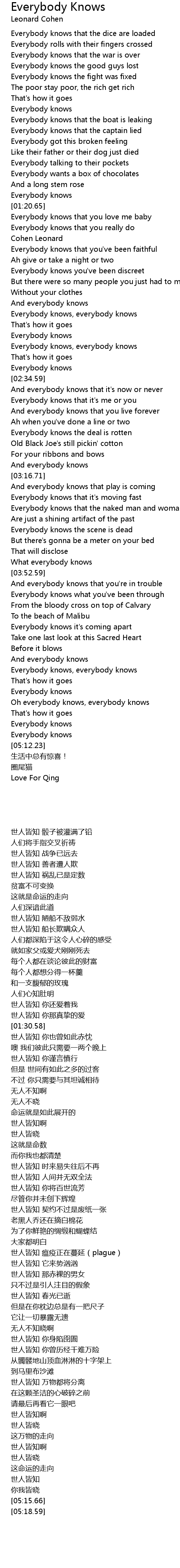 | [05:20.68] | Love For Qing |