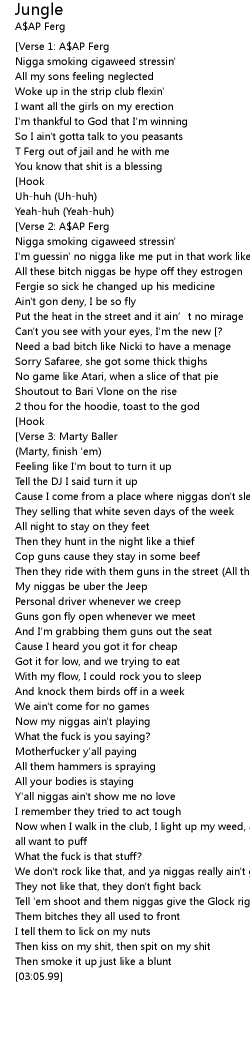 | [01:58.44] | My niggas be uber the Jeep |
