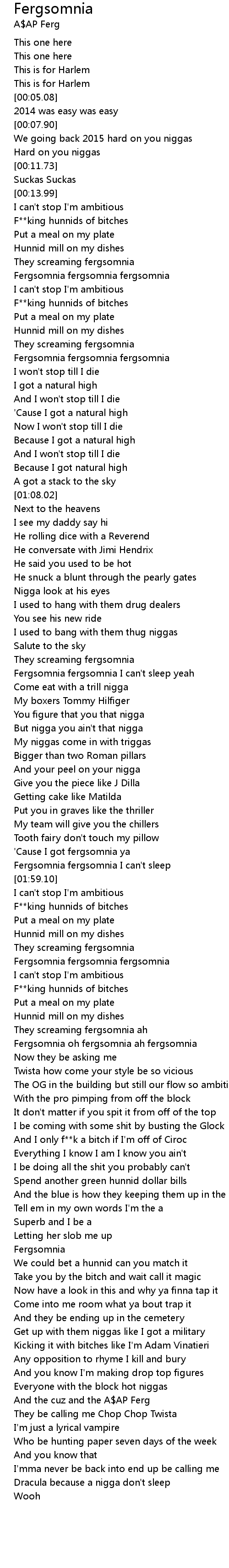 Fergsomnia oh fergsomnia ah fergsomnia |