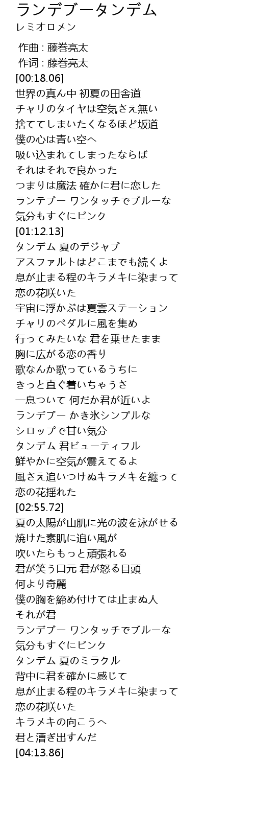 | [03:34.32] | ランデブー ワンタッチでブルーな |