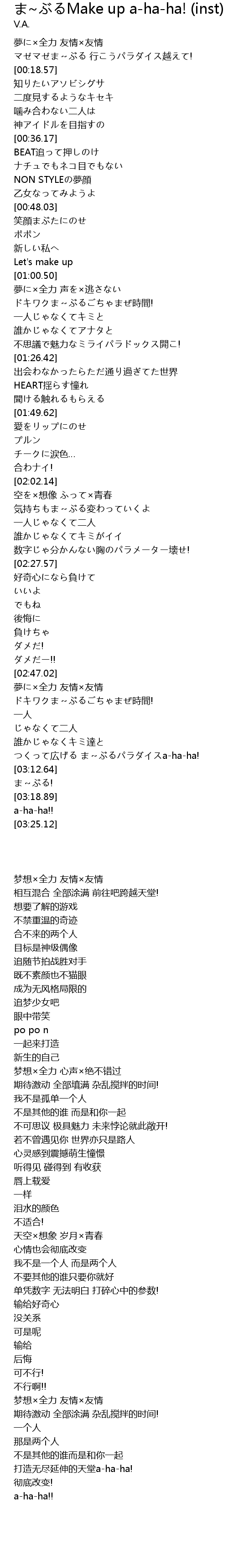 | [03:06.52] | つくって広げる ま~ぶるパラダイスa-ha-ha! |