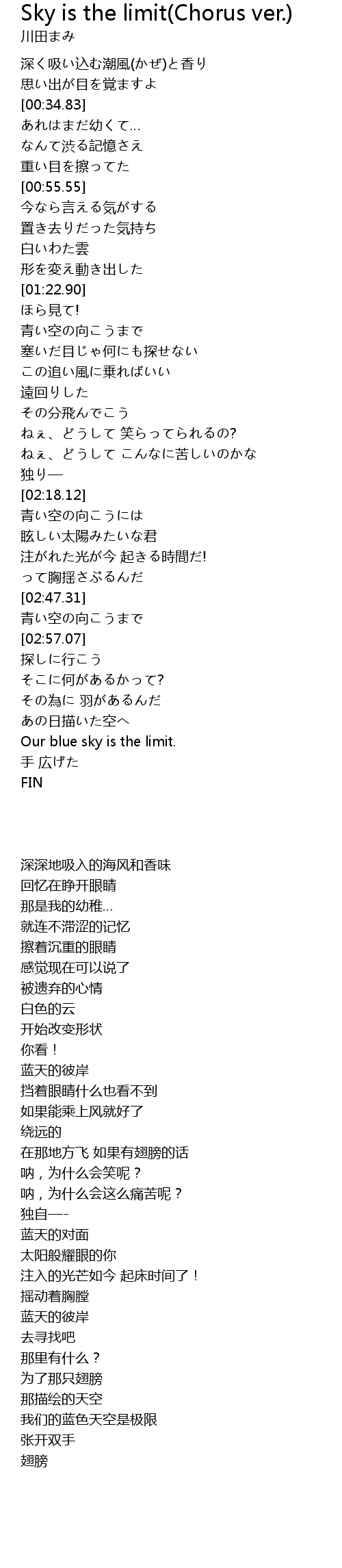 | [00:14.79] | 深く吸い込む潮風(かぜ)と香り |
